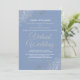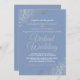 Just because you've been forced to move your wedding to a virtual ceremony, doesn't mean you can't send out beautiful invitations. This elegant invite features fancy white and grey script lettering on a light blue background with lacy silver faux foil floral filigree or curls and swirls in the corners. Perfect way to invite your friends and family to share in your special day, even if they can't be there in person.