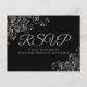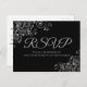 Silver Frills Simple Elegant Black Wedding RSVP Postcard