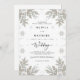 Evoke a sense of serene winter elegance with this design. Delicate, frosty foliage frames the scene, complemented by subtle snowflake accents, creating a cool, ethereal atmosphere for your special day.