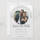 This Garland Photo Save the Date Announcement comes with a simple text design, an elegant foliage garland in a modern outlined box waiting for your photo and your wedding details to customise against a light grey arch background.
