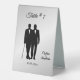 Silver colour scheme, These functional table numbers make unique mementoes for anyone that gets one. High fashion and tuxedo wearing grooms with names, date and table number.
