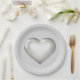 This paper plate features a shapely silver heart with a glass-like appearance. Great for engagement parties or silver anniversary celebrations.
