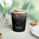 Silver and Black Faux Glitter and Sparkle Elegant Monogram Birthday, Wedding, Bridal Shower or Bachelorette Party Cup. This Birthday Party Cup can be customised to include your initial and first name. Please contact the designer for customised matching items.