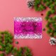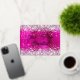 The background features a girly faux sparkly silver glitter paired with fuchsia and hot pink ombre foil.