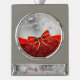 Silver Glitter And Red Christmas Sparkles Bow Plated Banner Ornament
