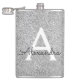 Silver Glitter and Sparkle Monogram Initial Hip Flask