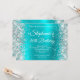Silver Glitter Aqua Blue Monogram 40th Birthday Invitation