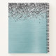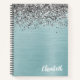 Silver Glitter Aqua Teal Brushed Metal Monogram Notebook