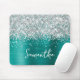 Silver Glitter Aqua Teal Glam Name Mouse Pad