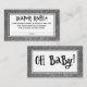 Here is a fun, gender-neutral option for your baby shower diaper raffle planning. The centre of both sides was covered with a black-bordered, simple white badge. Behind that is a faux silver glam glitter pattern. On the front, a black header reads "Diaper Raffle" in a quirky, uneven font which I've added as a graphic overlay. Beneath that in an all-caps, casual, editable sans-serif font is the also-editable message "Come bearing diapers in packs of any size, and your name will be entered for a chance to win a prize!" Make these directions say anything you like, if you want to change the words up in any way. Beneath that is a line with the word "Name" under it with plenty of space for your friends' names to be written. The back of the card has a graphic with the words "Oh Baby!" in the centre. All layers were left unlocked so you can adjust and customise as you see fit. Please don't hesitate to reach out if you need assistance. // 44 // Designed by Melody Watson for Paper Muserie.