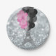 Silver Glitter & Balloons Paris Eiffel Tower Party Paper Plate