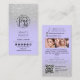 This sleek and modern business card template is perfect for beauty professionals who want to showcase their services with a minimalist touch. The silver glitter ombre and pastel lavender purple colour scheme creates a professional and stylish look, allowing the focus to remain on your brand. With placeholders for your logo, contact details, and social media handles, it’s easy to customise this card to reflect your business. The QR code on the back provides a convenient way for clients to access your portfolio or booking information. Ideal for makeup artists offering bridal, event, and tutorial services, this card is a sophisticated way to stand out.