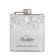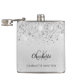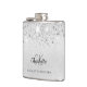 A faux silver metallic looking background with elegant faux glitter dust. Personalise and add her first name, monogram initials and full name. The first name is written in black with a modern hand lettered style script.