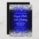 Silver Glitter Black Blue Gradient 40th Birthday Invitation