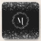Add a touch of sparkle with this elegant silver glitter and black monogrammed beverage coaster, perfect for weddings, parties, and personalised gifts.