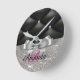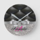 Silver glitter black monogram electronics Bag Round Clock