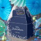 Silver and Navy Blue Sparkle Glitter and Initial Paper Party Gift Box. This makes the perfect sweet 16 birthday, wedding, bridal shower, anniversary, or bachelorette party gift for someone that loves glam luxury and chic styles. Custom it with your name and date.