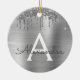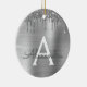 Silver Glitter Brushed Metal Monogram Name Ceramic Ornament