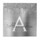 Silver Glitter Brushed Metal Monogram Name Ceramic Tile