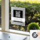 Promote your business with this feminine sparkly silver glitter promotional window cling with QR Code. Use your own custom QR code to direct potential customers to your website, current listings or contact information. It's a minimal design perfect for real estate agents, brokers and other professionals.