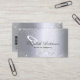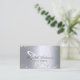 An elegant and glamourous business card on a faux silver looking background decorated with faux glitter and a butterfly. Elegant black hand lettered style script. Personalise and add your name, title, phone number, mail and website address. Add your own qr code to your website or social media..