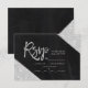 Silver glitter chalkboard typography wedding Rsvp, Silver typography on black chalkboard silver glitter colour block and faux silver geometric stripes chic wedding rsvp , perfect for elegant wedding,