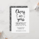 A cheers to 40th birthday invitation, which you'll be able to easily personalise with your party details. This Cheers to 40 years invitation can be easily personalised to the birthday age you need. The back of this 40th party invitation has a beautiful silver glitter design. Please note there is not actual glitter on the party invitation.