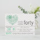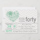 Modern style 40th birthday invitation features a silver glittery chevron stripe background, floral heart of teal green, text that reads Celebrate Sixty, and areas you can customise with the 40th birthday party recipients name and party specifics.