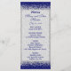 An elegant modern wedding menu with a sprinkled silver glitter confetti effect on a rich royal blue background. A classy design, for any kind of weddings. Also available are matching place cards and table number cards. The font can be changed to style you like.