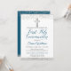 Silver Glitter Cross Script First Holy Communion Invitation