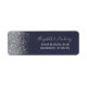The left-hand edge of this elegant modern wedding return address label features a silver faux glitter design. The customizable text combines silver gray handwriting, copperplate and italic fonts on a dark navy blue background.