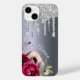 Silver glitter drip flowers burgundy name Case-Mate iPhone case