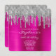 Silver Glitter Drip Fuchsia Foil 60th Birthday Invitation