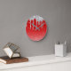 Silver Glitter Drip Red Background Round Clock