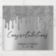 Silver glitter drip wedding champagne bottle label. Personalise it with your event details.