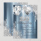 Silver Glitter Drips Balloons Blue Metallic 100th Invitation