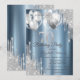 Silver Glitter Drips Balloons Blue Metallic 70th Invitation