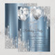Silver Glitter Drips Balloons Blue Metallic 75th Invitation