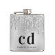 Silver glitter drips black monogram name hip flask