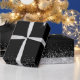 Elegant, classic, glamourous and feminine style party wrapping paper. A black background decorated with faux silver glitter drips and sparkle.
