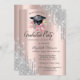 Silver Glitter Drips Floral Grad Cap Rose Gold Invitation
