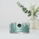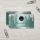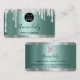 Silver Glitter Drips Frame Qr Code Logo Teal Green Business Card