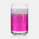 Silver Glitter Drips Hot Pink 21st Birthday Can Glass