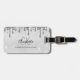 A faux silver metallic looking background. Decorted with faux glitter drips, paint dripping look. Personalise and add your first name, monogram initials and full name. The first name is written with a modern hand lettered style script.