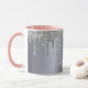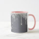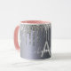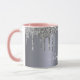 Silver glitter drips monogram name script mug