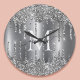 Bring a cool modern elegance to any room with this silver glitter drips personalized wall clock. Featuring a sleek faux glitter cascade design with your custom monogram and name, this clock adds a refined touch of sparkle to your wall decor.
