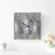 Silver Glitter Drips Monogram Personalized Square Wall Clock