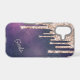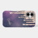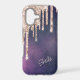 This glamorous personalized phone case has a purple pink gradient background that is slightly distressed. At the top are sparkly silver and pink red tones of glitter drips. Your name is in script below. You may change the font, if you'd like, by customizing.