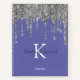 Enjoy this elegant gratitude journal design featuring your text and monogram or initial with chic and sparkly rose gold copper glitter drips over a periwinkle blue (colour of the year 2022) background.