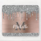 Silver Glitter Drips Pink Metallic Monogram Mouse Pad